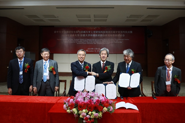 12月8日,清华大学深圳研究生院-京都大学地球环境学堂双学位项目签约仪式暨清华大学—京都大学2018年中日环境技术联合研究与教育研讨会在我院成功举办。此次研讨会不仅总结了“清华-京大环境技术联合研究和教育中心” (以下简称中日中心)自2005年建成以来的发展和取得的成就,就中日双方环境学科的最新成果和动态进行交流,还正式签订了清华大学—京都大学环境学科双学位合作协议。