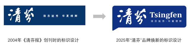 “清芬”品牌的新标识延续了“清芬”的原有字体与口号,以赓续历史文脉;增加了英文字体,并增加了代表传播与沟通对话框符号,使之更具国际化和时代感。