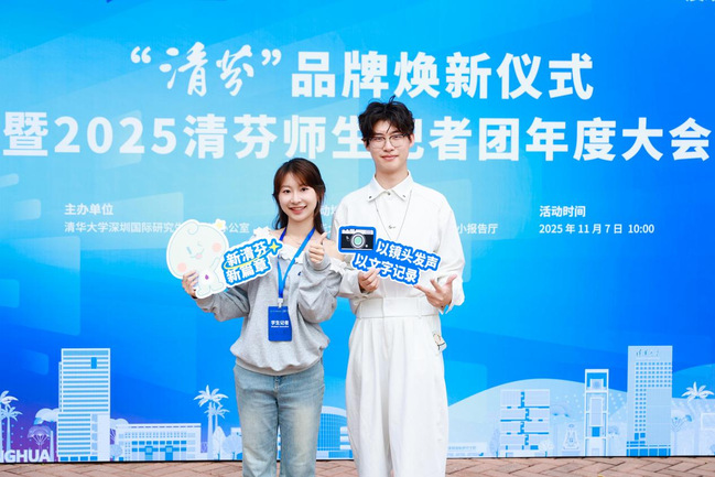 在第26个记者节到来之际,11月7日,“赓续华章·清芬远扬——‘清芬’品牌焕新仪式暨2025清芬师生记者团年度大会”在清华大学深圳国际研究生院(下称“深圳国际研究生院”)举行。深圳国际研究生院党委副书记关添、《深圳日报》(Shenzhen Daily)执行总编辑孙锦、深圳报业集团要闻中心教育新闻部主任吴吉、深圳广电集团国际传播中心品牌部主任陈妮、中央广播电视总台大湾区之声责任主编于鑫淼、光明日报深圳记者站记者党文婷出席活动,深圳国际研究生院教学科研机构和职能部门新闻宣传负责人、师生宣传代表等齐聚一堂,共同见证“清芬”品牌的焕新以及2025年“清芬”学生记者团的成立。