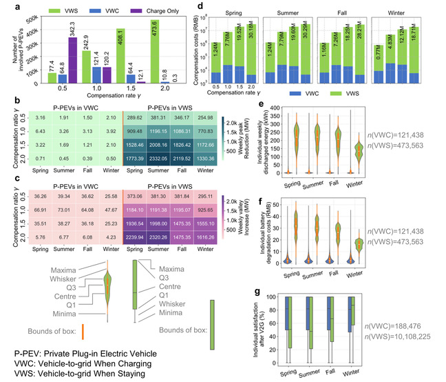 团队发现,VWS模式可以利用车辆超过80%的闲置停放时间,调节能力显著高于VWC模式,但同时也带来更高的补贴支出与电池损耗成本。研究表明不必为了追求极致的负荷平衡效果而牺牲用户体验,证明了一个“用户友好”的V2G策略的可行性,且其更具经济性和可持续性。