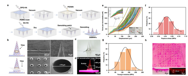 近日,清华大学深圳国际研究生院生物医药与健康工程研究院副教授张灿阳团队研发了一种可溶气泡微针贴片(DBMNPs),实现了多种亲/疏水药物的空间分隔负载与时序控制释放,成功破解了可溶微针共负载和共递送亲/疏水药物,同时实现杀菌与抑制炎症的难题。