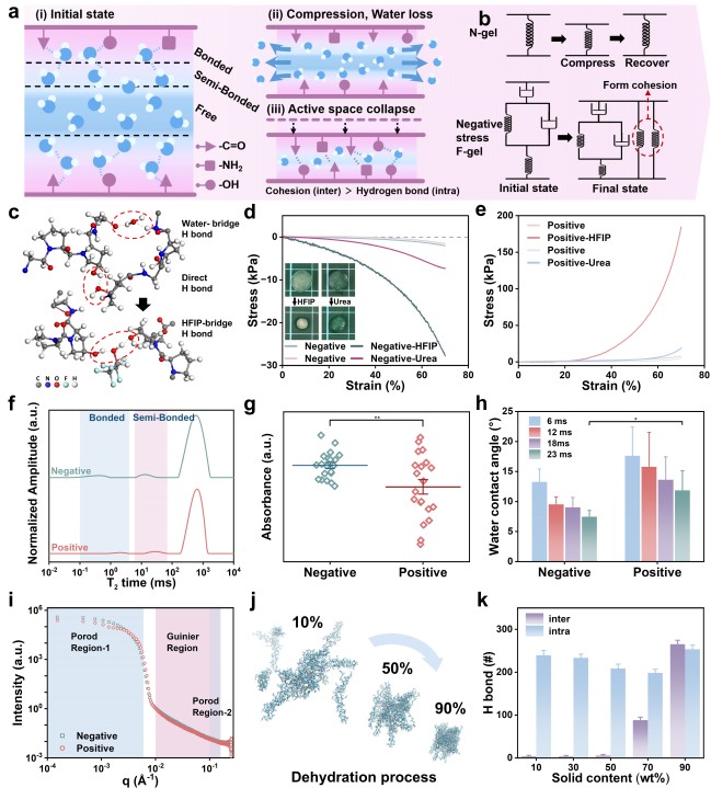 该研究提出了一种通过调控材料水合状态与微结构来编程负应力行为的新范式,有助于加深对细胞—ECM力学相互作用机制的理解,并为三维细胞培养、神经再生及组织工程支架的设计提供了新的技术基础。