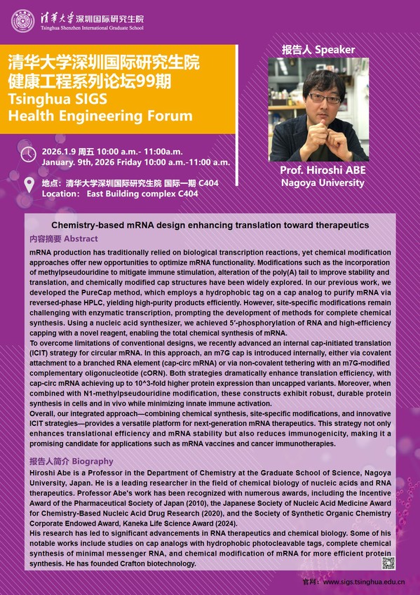 (1月9日)清华大学深圳国际研究生院健康工程系列论坛99期