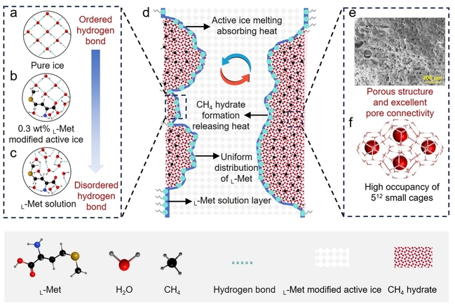 相关成果以“L-蛋氨酸修饰的活性冰实现超快速甲烷水合物动力学用于天然气固态储存”(L-Methionine modified active ice enables ultra-rapid methane hydrate kinetics for solidified natural gas storage)为题,在线发表于《绿色化学》(Green Chemistry)。