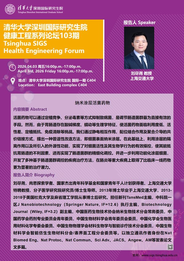 (4月3日)清华大学深圳国际研究生院健康工程系列论坛103期