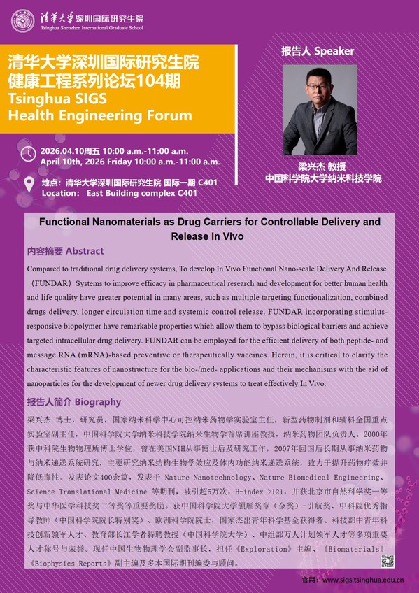 (4月10日)清华大学深圳国际研究生院健康工程系列论坛104期