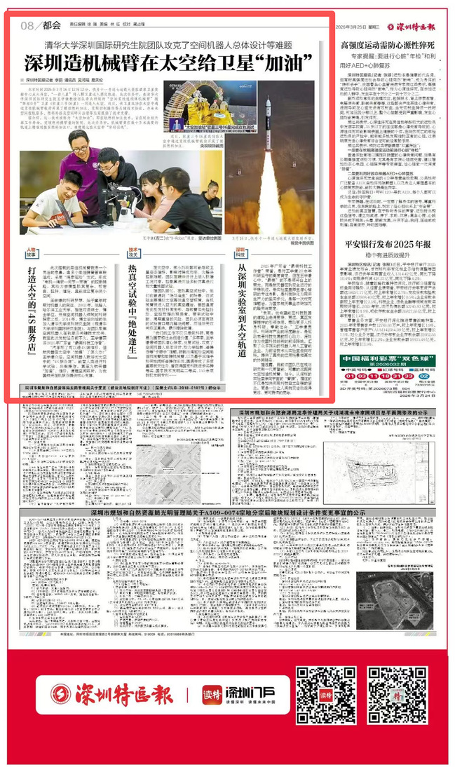 深圳特区报:清华大学深圳国际研究生院团队攻克了空间机器人总体设计等难题深圳造机械臂在太空给卫星“加油”
