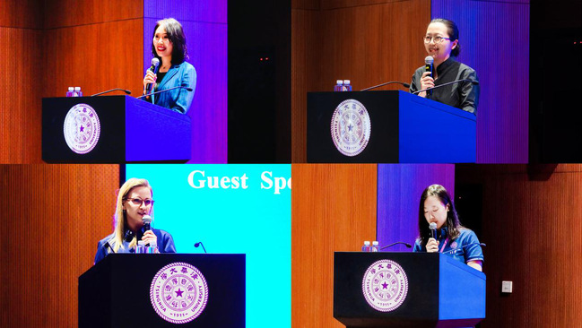 宋岩、郑兰蕊、卡洛琳·格伦德致辞,Qiao Pinker发言(从左至右、从上至下)