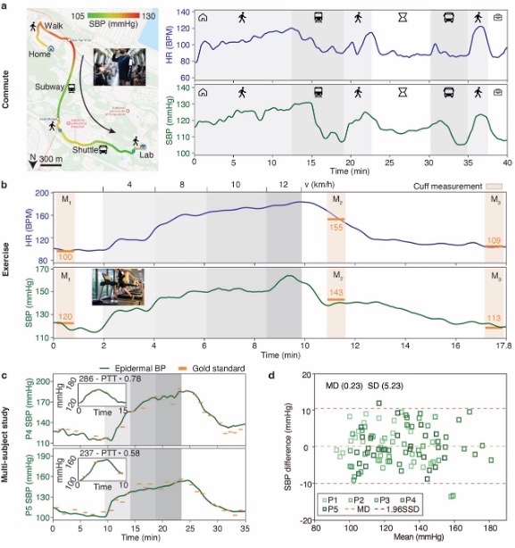 近日,清华大学深圳国际研究生院助理教授田曦团队联合国内外多家单位,研发出一种无线无源的表皮传感网络(epidermal sensor network),实现了在日常活动乃至运动场景中的连续收缩压监测(图1)。