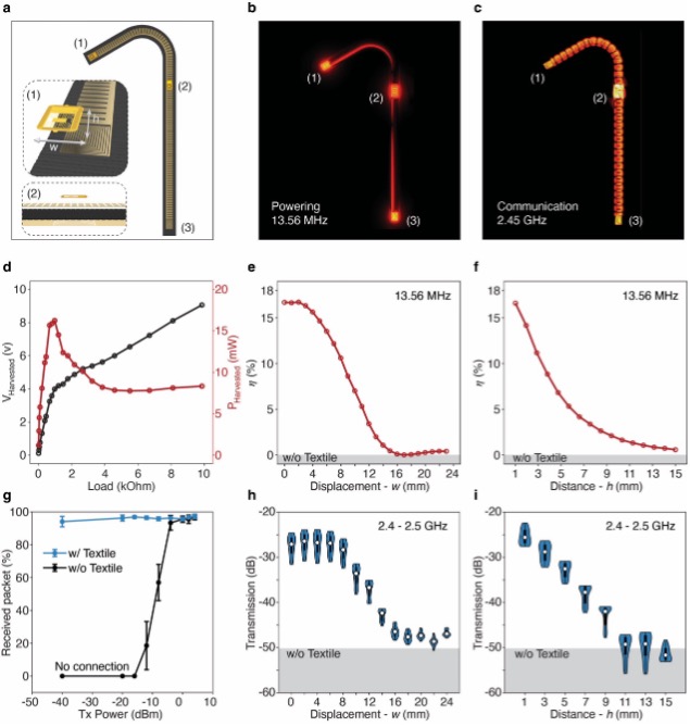 基于一种可集成于日常服装中的双模超材料织物(metamaterial textile),该生理传感网络的数据与能量可实现无线传输。其将13.56 MHz无线供能与2.4 GHz无线通信分离到两个独立通道中,在兼顾无线供能效率的同时,实现了更高速率的数据传输,为连续、高保真、多节点生理监测提供了新的技术路径(图2)。
