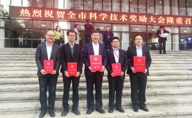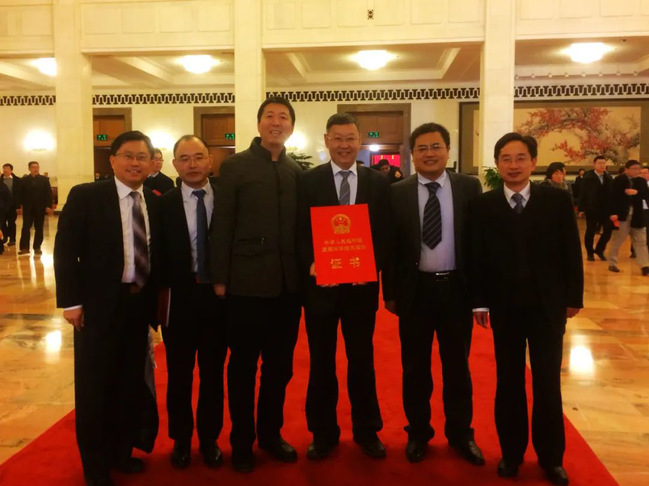 2018年1月8日,康飞宇(右三)团队完成的项目获得2017年度国家技术发明奖二等奖