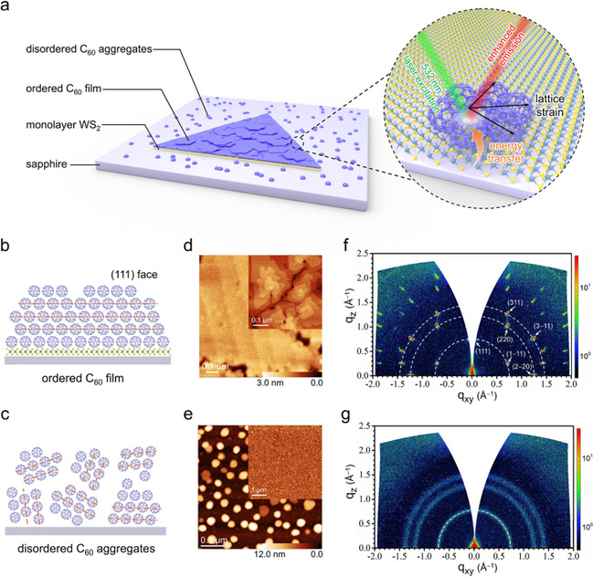 分子半导体与二维材料的范德华异质结合,为柔性光电器件与低维集成光电子学开辟了新方向。其中,富勒烯(C60)作为经典分子半导体,具有优异的电荷传输和能级特性,但其高度对称的二十面体结构严重限制了其光致发光。如何突破其发光瓶颈,并将材料层面的性能提升有效转化为光电器件的实际优势,是该领域面临的关键挑战。近期,清华大学深圳国际研究生院副教授徐晓敏团队与合作者提出了一种全新的“界面异质外延驱动”策略。研究团...
