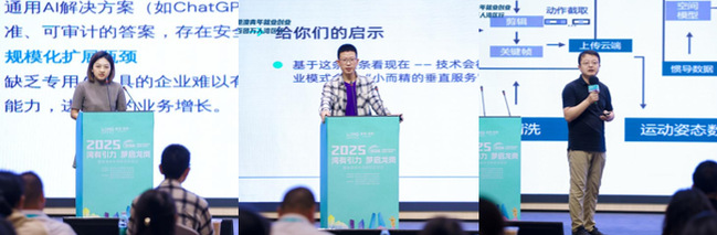 “创新创业案例”路演环节聚焦清华系人工智能领域的创新力量,汇聚了来自清华x-lab的三支优秀团队围绕技术转化、团队构建与市场切入等议题,分享了从创意走向产业一线的实战智慧,为现场参会青年提供了可借鉴的成长路径与决策框架。
