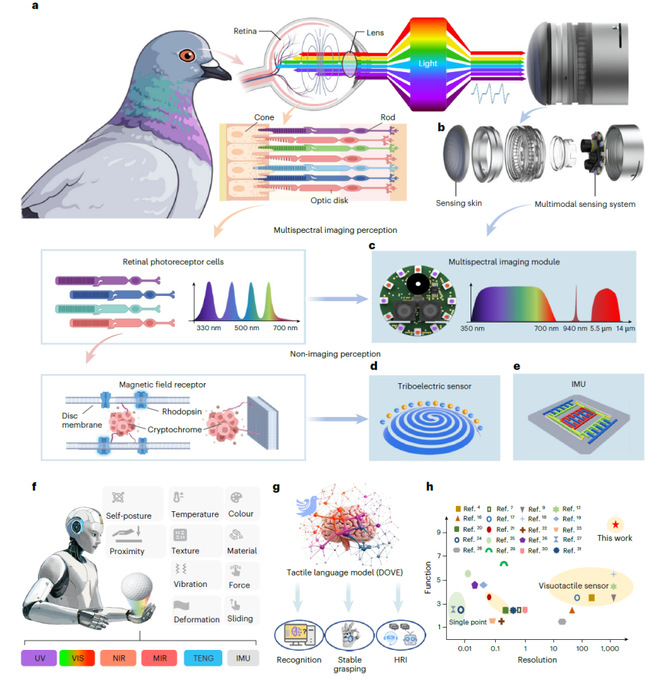 近日,清华大学深圳国际研究生院丁文伯团队联合国内外多家单位,成功研发出一种受鸽眼启发的多模态高分辨率触觉传感器(SuperTac),取得了机器人触觉感知能力的重要进展(图2)。