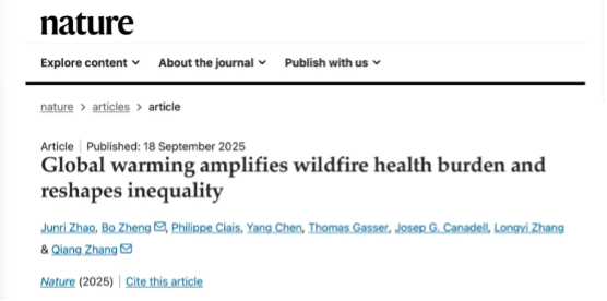 A new study led by researchers from Tsinghua University Shenzhen International Graduate School (Tsinghua SIGS) was published online in Nature as an Accelerated Article Preview on September 18. Titled “Global warming amplifies wildfire health burden and reshapes inequality,” the research focuses on the growing threat of wildfires—uncontrolled fires in forests, grasslands, and shrublands that lead to major disturbances to Earth’s environment. These fires release substantial amounts of greenhouse gases and air pollutants, exacerbating climate change and endangering public health.